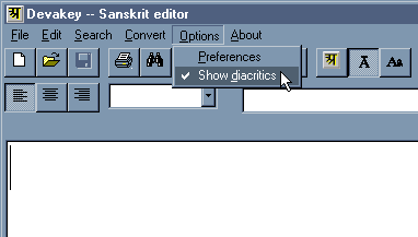 the menu under „Options/Show diacritics“ you can also display a table, that